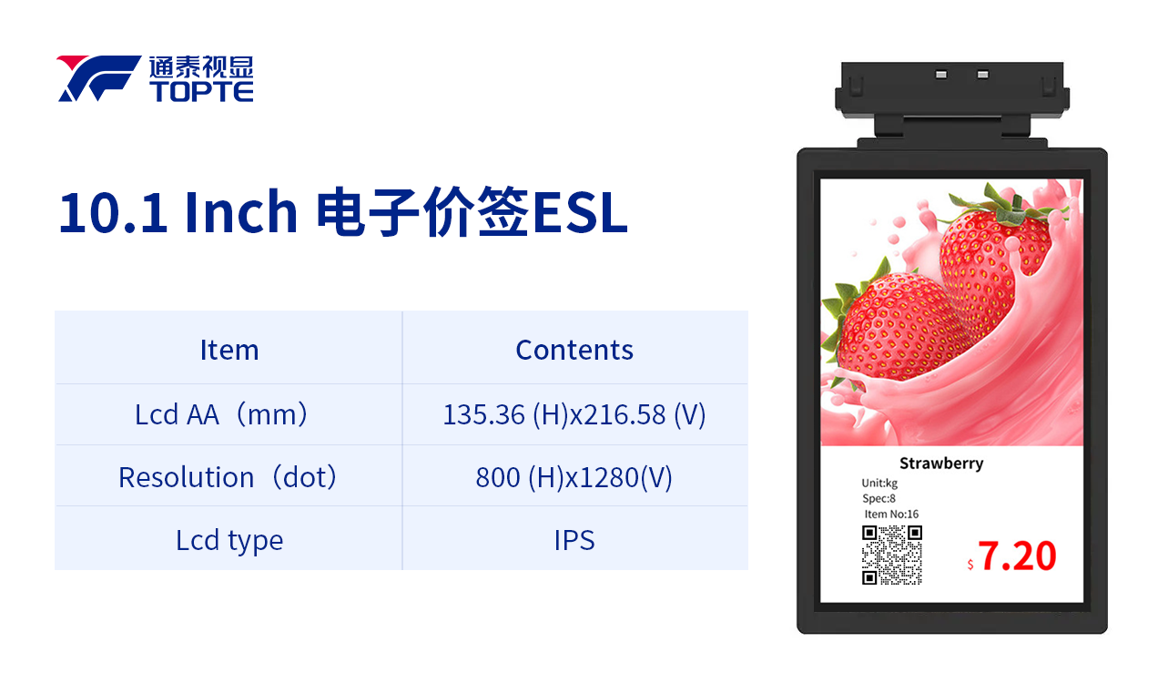 作为专业的显示解决方案提供商,通泰视显(TOPTE)在LCD电子价签领域具备以下核心优势: